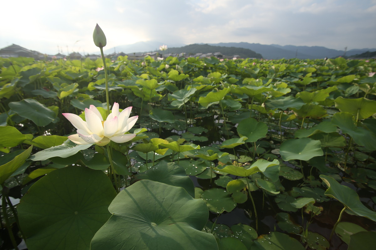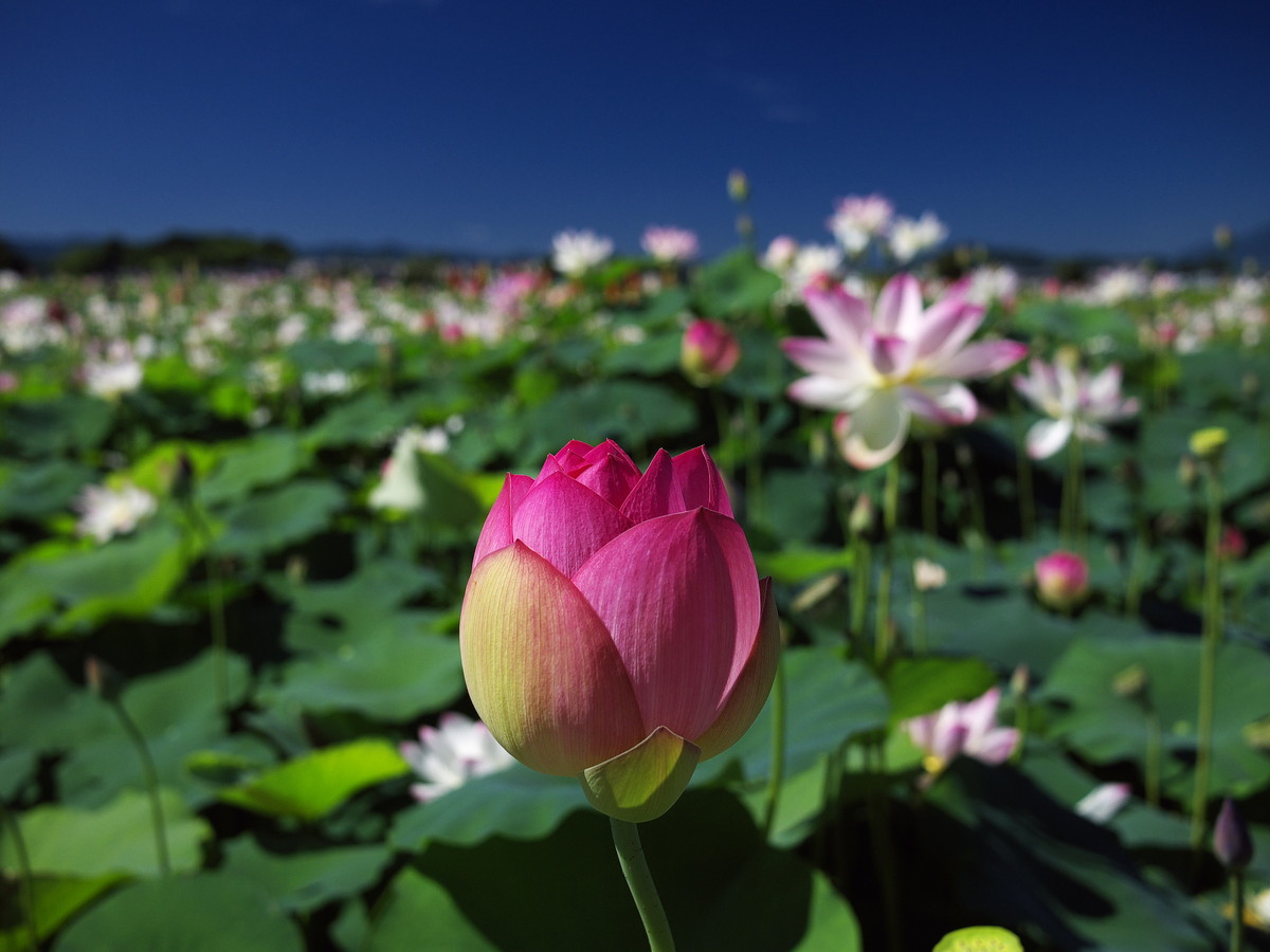 夏の藤原宮跡には蓮池があります。蓮の花は早朝から午前中に開きますので、夏は早起きして藤原宮跡に行くことをおすすめします。また、一面に咲くキバナコスモスも藤原宮跡の夏の見どころです。